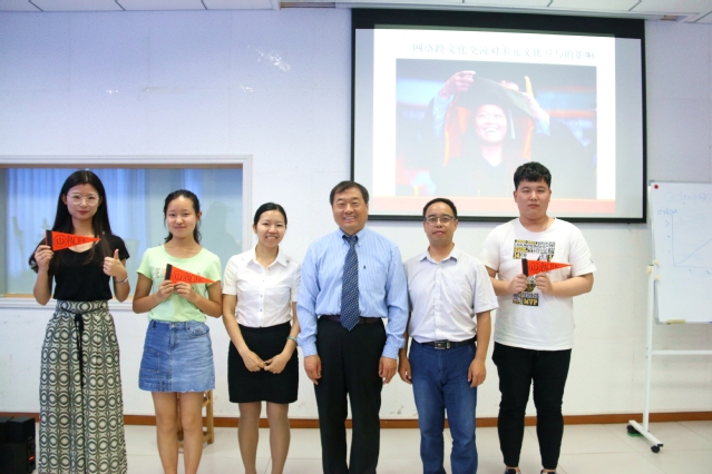 6月25日上午8时,美国太平洋大学传媒系主任董庆文教授于格致楼2504教室作题为《网络跨文化交流与多元文化参与的影响》的学术讲座,传媒学院副院长冉明仙、张金龙博士、传媒学院17级部分学生参加了本次讲座。本次讲座由冉明仙副院长主持。董庆文教授通过传媒人的五个技能和他所创立的“SMART”学习方法与同学们进行交流和讨论,切入正题《网络跨文化交流与多元文化参与的影响》。通过介绍跨文化交流的概念、跨文化交流的方式等概念,结合他所作的调查研究报告,来阐释跨文化交流,多元文化参与,有利于开拓视野,避免认识偏差。冉明仙副院长希望同学们将所学用于日常生活,多与别人进行跨文化交流,获取有益信息;但在跨文化交流时,也要以本国利益为重,要有家国情怀,这样才能增强本国及本民族的民族凝聚力,共同完成民族复兴伟大梦想。