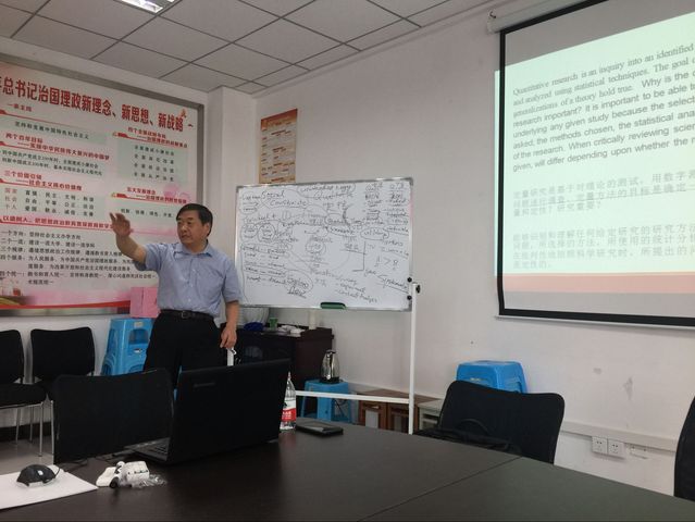另外还有两场针对教师的学术交流:分别是由韦济木院长主持的讲座《定性与定量研究方法对比讨论》,由冉明仙副院长主持的讲座《定性研究方法:焦点访谈法的主要因素》。