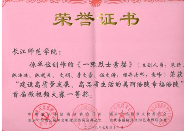 稍早前的2018年6月,在传媒学院院长韦济木的大力推动下、书记肖云久的组织协调下,由涪陵电视台导演高宏(传媒学院兼职教授)、传媒学院教师袁峰和9名学生组成的拍摄团队,结合增福乡当地生态宜居特点、福寿养生文化、增福土鸡产业等,拍摄了形象宣传片《增福欢迎你》;通过跟踪增福母鸡孵化小鸡20天的全过程,拍摄了微纪录片《为母不易》,生动的阐释了母爱的伟大,获得了涪陵区微视频大赛三等奖;并以黄龙村三百年黄葛奇树为题材拍摄了公益宣传片《反哺之义中华美德》,通过讲述“黄葛古树树枝扎根深土30年后慢慢向老树供应营养”的故事,生动地诠释了福寿孝道文化,并荣获第十届“大广赛”国家级三等奖;同时结合福寿之地百岁老人故事,拍摄了微纪录片《一张烈士素描》,获涪陵区微视频大赛一等奖以及“红色记忆V计划”微视频大赛全国二等奖。