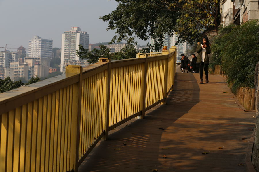 2019年4月17日上午10:00,参与此次以“韶华山城,雾都留声”为主题的实践周活动的全体39名同学在邵晶老师与杨竞豪老师的带领下共同前往本次活动的第三个目的地——山城步道,这是他们第二天的实践之旅,而这里这是一条最长,坡度较高的历史古道,同学们穿行在步道中,感受着老山城的的风俗历史文化,在远眺时看到的又是高楼林立现代景观,将健身和观光串联在一起,为创作更好的实践作品也积累了许多素材与心得,通过感受步道文化,对重庆有更加深刻的了解。