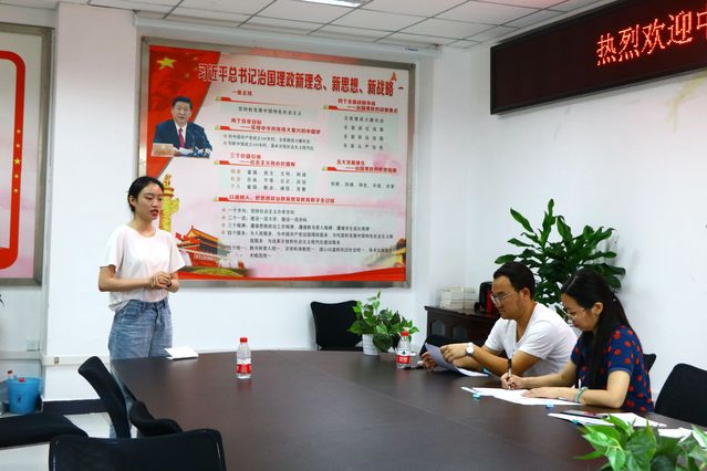 传媒学院立即在即将实习的2016级学生中宣传,网络与新媒体专业、播音与主持艺术专业、广播电视学专业共有20多人报名希望去央视实习,为给同学们提供公平的实习机会,锻炼同学们的心理素质,提升面试技巧,同时为选拔最合适的优秀学生,6月11日中午,传媒学院在格致楼2308教室开展2020届毕业生赴央视实习机会的陈述面试。传媒学院副院长冉明仙教授,2016级辅导员李泽榉老师担任面试官。