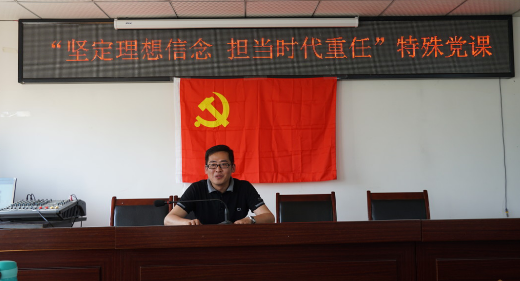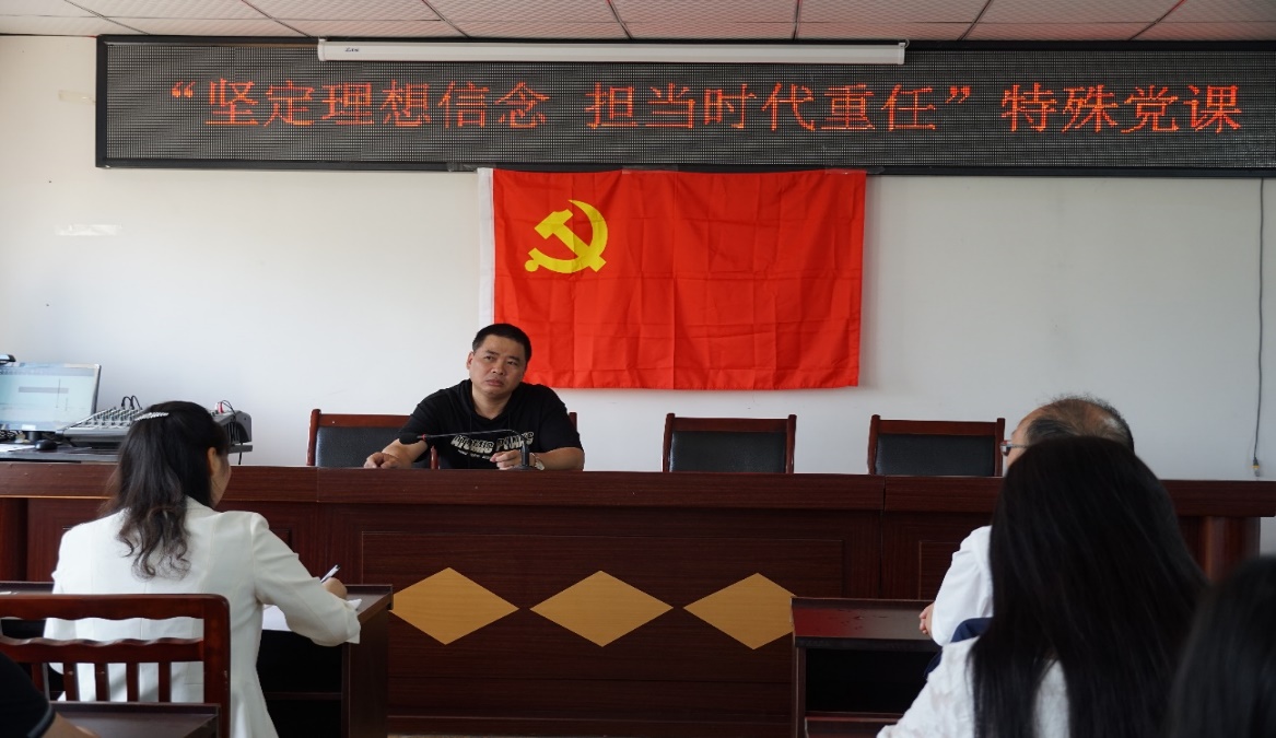 图五:播音与网新教师党支部书记陈艳花同志和大家一起认真聆听特殊党课