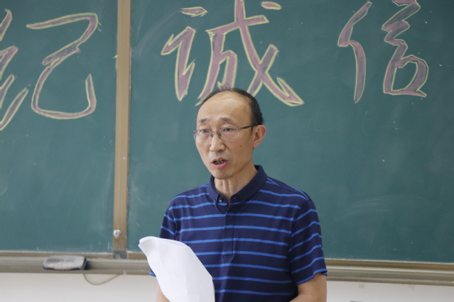 韦院长和冉副院长主要主持2017级学生的班会。他们从诚信考试的重要性以及对自己今后学习和生活的影响为同学们做分析,希望同学们能踏实做学问,诚信考试,并预祝同学们取得好成绩。