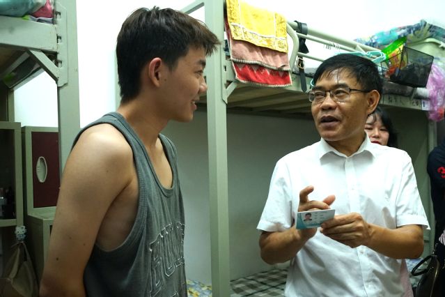 黄老师在走访的过程中发现有的寝室刚拖过地,他细心地提醒同学们拖地的时候不要把地面弄得太湿,要注意安全,以免地面太滑,造成危险。谢老师在介绍自己的同时表示:同学们在生活或学习上无论遇到什么困难,都可以和她进行交流,也希望同学们可以安全快乐地度过大学生活。