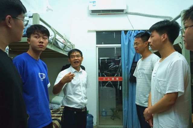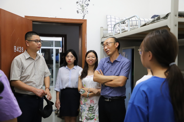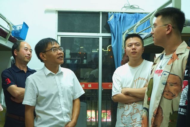 其中,传媒学院党总支书记肖云久,党政办公室主任喻洁,实验中心主任汪志平以及2016级辅导员王雯来到北苑十五舍的男生303304305等十间寝室进行了问候。