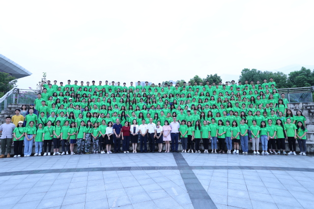 在阵阵掌声中开学典礼落下了帷幕,结束后谢丹老师给新生们说明了近日的相关日程。随后,全体师生移步挐云小广场进行合影留念。