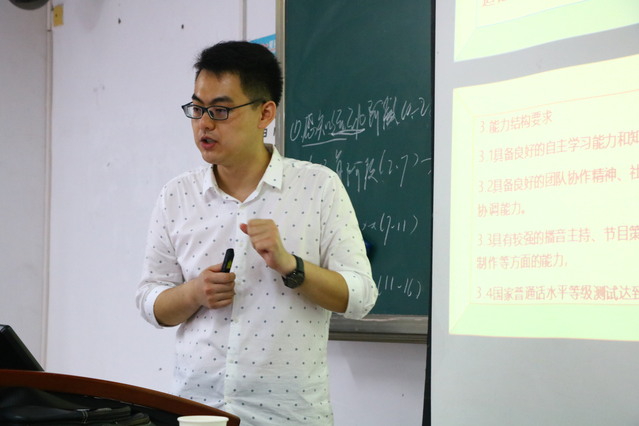 9月10日上午9点,传媒学院于正心楼401教室举行广播电视学专业思想教育讲座,实验教学中心主任汪志平担任主讲人。汪老师从广播电视学简介、人才培养方案、职业规划与专业发展、专业学习探讨、问题解析与交流五个方面给同学们深入地剖析了该专业的学习方向。