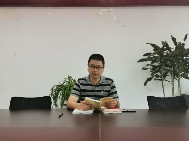党支部书记黄智带领全体党员同志集中学习了《习近平新时代中国特色社会主义思想学习纲要》中的“习近平新时代中国特色社会主义思想是党和国家必须长期坚持的指导思想”这篇文章,并指出“习近平新时代中国特色社会主义思想,是新时代中国共产党的思想旗帜,是国家政治生活和社会生活的根本指针,是当代中国马克思主义、二十一世纪马克思主义。”