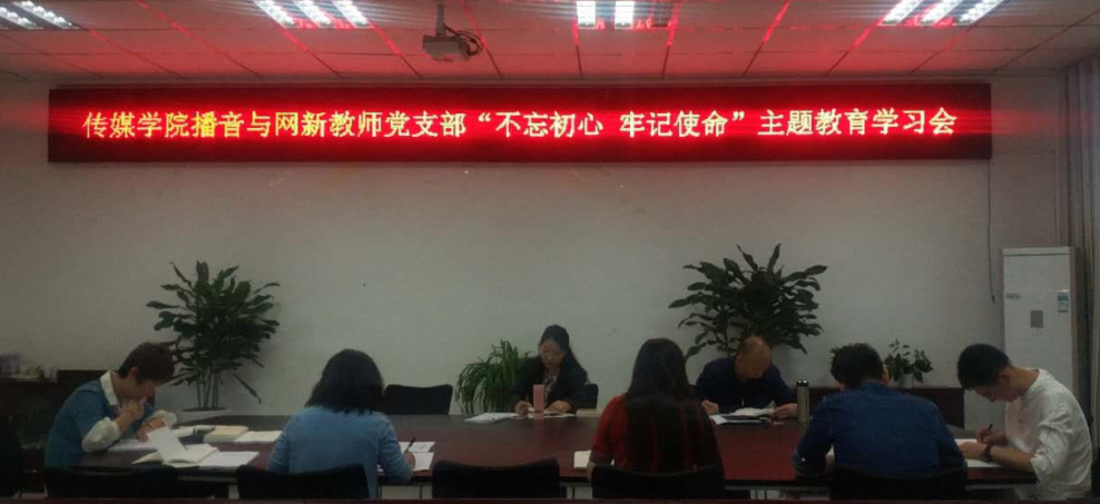 为积极响应“不忘初心、牢记使命”主题教育工作总体要求、根本任务、具体目标,9月20日中午,传媒学院播音与网新教师党支部在传媒学院2308会议室召开传媒学院播音与网新教师党支部开展“不忘初心、牢记使命”主题教育学习会。本次学习会由支部书记陈艳花带领支部党员同志学习。