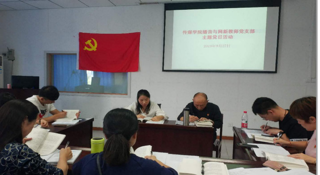 (图一:播音与网新教师党支部通过主题党日活动集中学习党的理论)