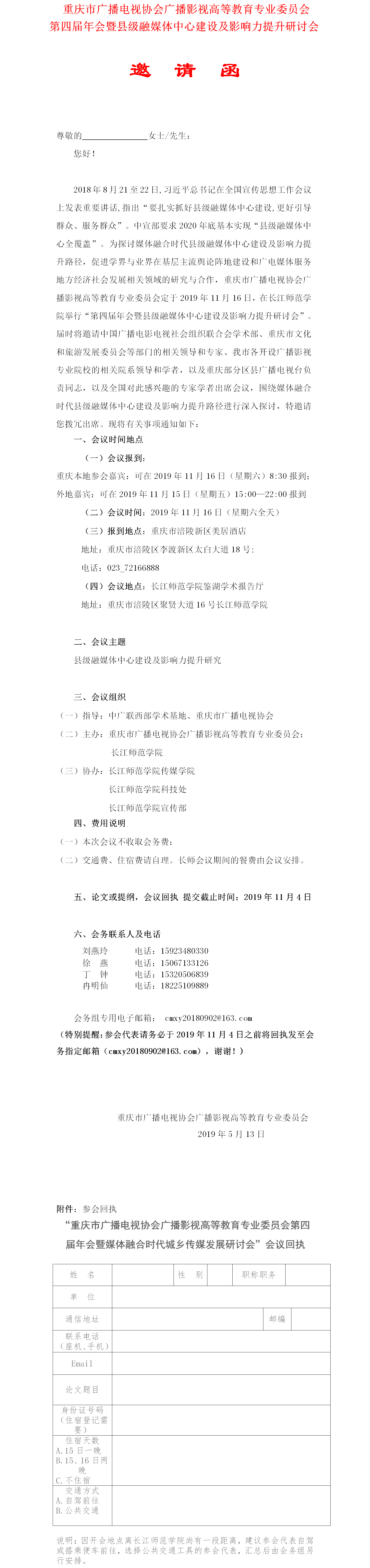 重庆市广播电视协会广播影视高等教育专业委员会第四届年会暨县级融媒体中心建设及影响力提升研讨会.doc