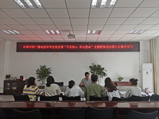 (通讯员:吕嘉鑫)10月9日中午12时,广播电视学学生党支部在格致楼2308开展“不忘初心、牢记使命”主题教育第三次集中学习。党支部全体在校党员同志参加此次主题教育学习活动。