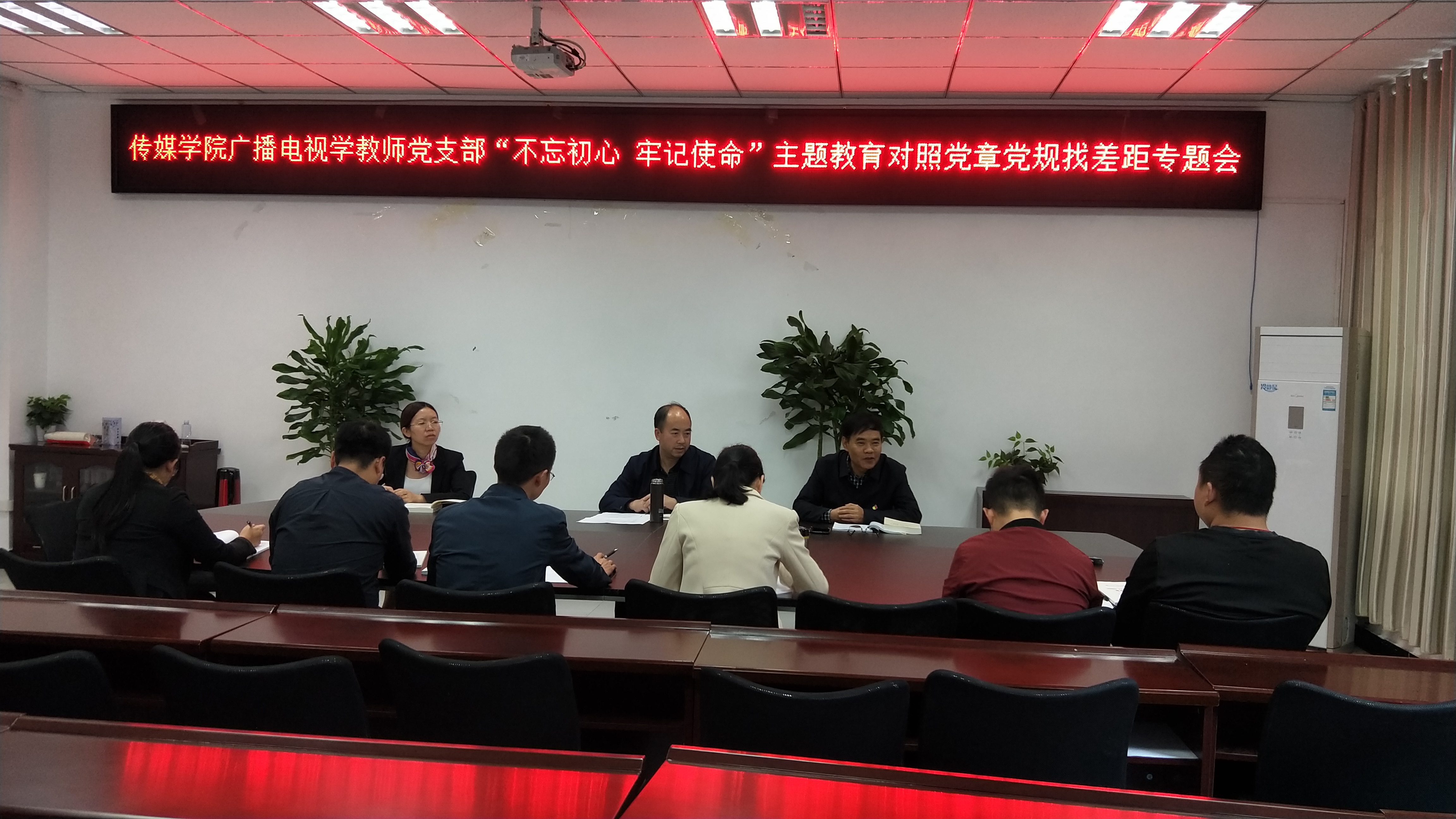 根据中共长江师范学院委员会组织部关于开展“不忘初心、牢记使命”主题教育的指导意见,传媒学院广播电视学教师党支部10月18日开展了对照党章党规找差距专题会议。