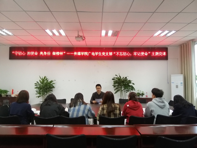 至此,传媒学院广电学生党支部“不忘初心、牢记使命”主题党课顺利结束。