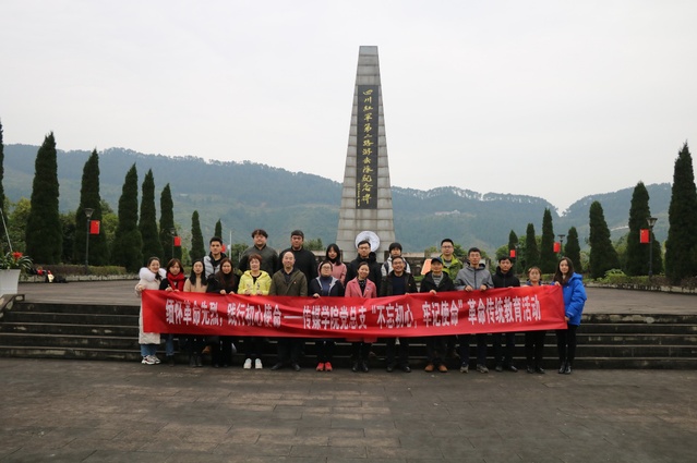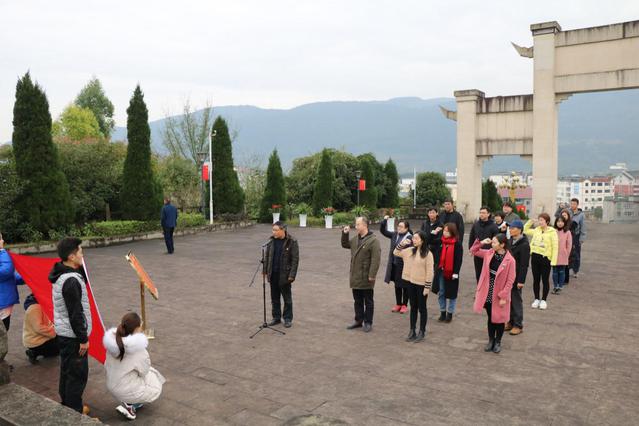 在四川省红军第二路游击队纪念碑前(红军烈士陵园),传媒学院党总支向革命先烈敬献花圈,党总支书记肖云久带领党员同志重温入党誓词:我志愿加入中国共产党,拥护党的纲领,遵守党的章程,履行党员义务,执行党的决定,严守党的秘密……”师生们洪亮而坚定的声音在烈士陵园内回响。宣誓结束,师生党员向烈士鞠躬悼念