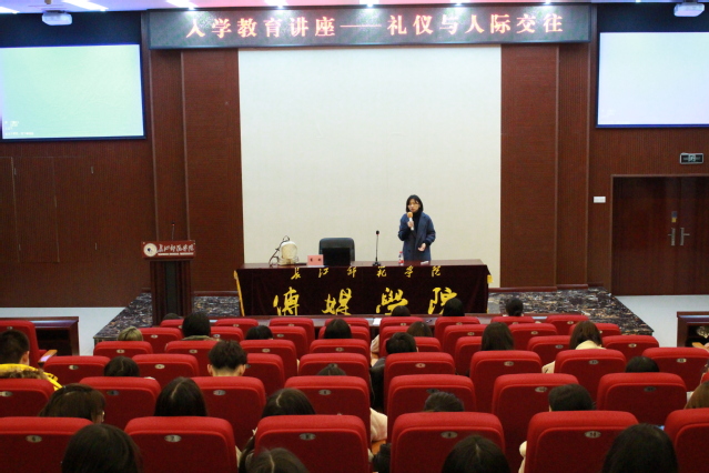 (通讯员:李浩宇 杨灿 陈裕芬)为了提升大学生的自我意识,与他人建立良好的人际关系,12月18日晚7点,传媒学院在摇光学术报告厅举行了礼仪与人际交往入学教育讲座。文学院老师蹇利担任主讲人,传媒学院2019级全体学生聆听了此次讲座。