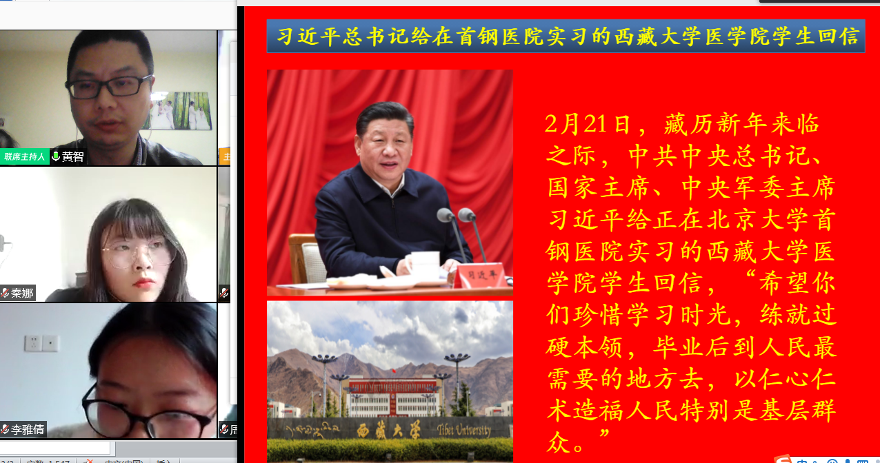 支部书记黄智同志带领全体党员认真学习了习近平总书记给在首钢医院实习的西藏大学医学院学生和北京大学援鄂医疗队“90后”党员的两封回信,并组织大家进行了主题讨论,全体党员热议习近平总书记的回信。