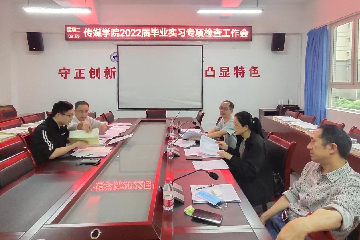 (通讯员;蔡信芳)为配合学校强化教学日常管理,规范教学基本行为,也为全面了解我院2022届本科毕业生实习的具体情况,确保毕业实习教学的顺利进行,根据教育部审核评估要求和《教学检查实施办法》(长师院办发〔2022〕37号)文件,传媒学院于4月18日在格致楼2313开展了2022届毕业生毕业实习专项检查工作。周绍东同志任专项检查组组长,王泓教授、王慧超老师为专家组成员。