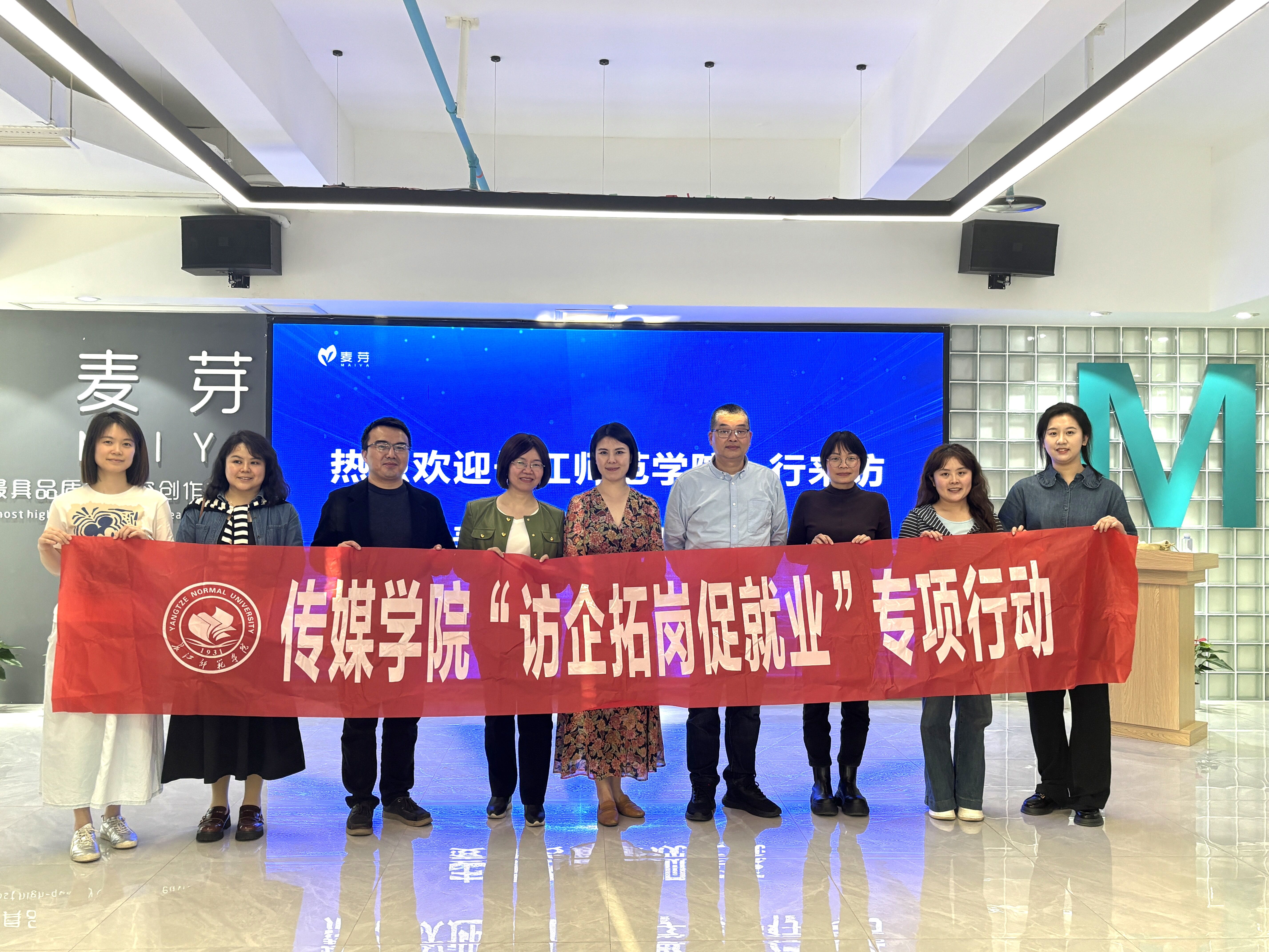 为深入贯彻落实教育部关于“春季促就业攻坚行动”的决策部署,积极响应国家关于加强校企合作的政策导向,深化产教融合,3月26日下午,传媒学院组织开展了“访企拓岗促就业”专项活动。学院党委书记谢诗茂、院长冉明仙带队走访了重庆麦芽传媒有限公司,受到了公共事务总监何睿的热情接待。学院办公室副主任李攀、学工办副主任王雯、专业教师卢俊、2025届毕业班辅导员甘元琴参加此次活动。