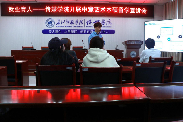 为响应传媒学子对国际化教育资源的关注,满足传媒学子探索多元学术路径、提升专业素养的需求。4月8日16时,传媒学院于格致楼2308开展中意艺术本硕留学宣讲会。此次活动特别邀请四川美术学院国际课程委托项目的彭磊老师担任主讲人。