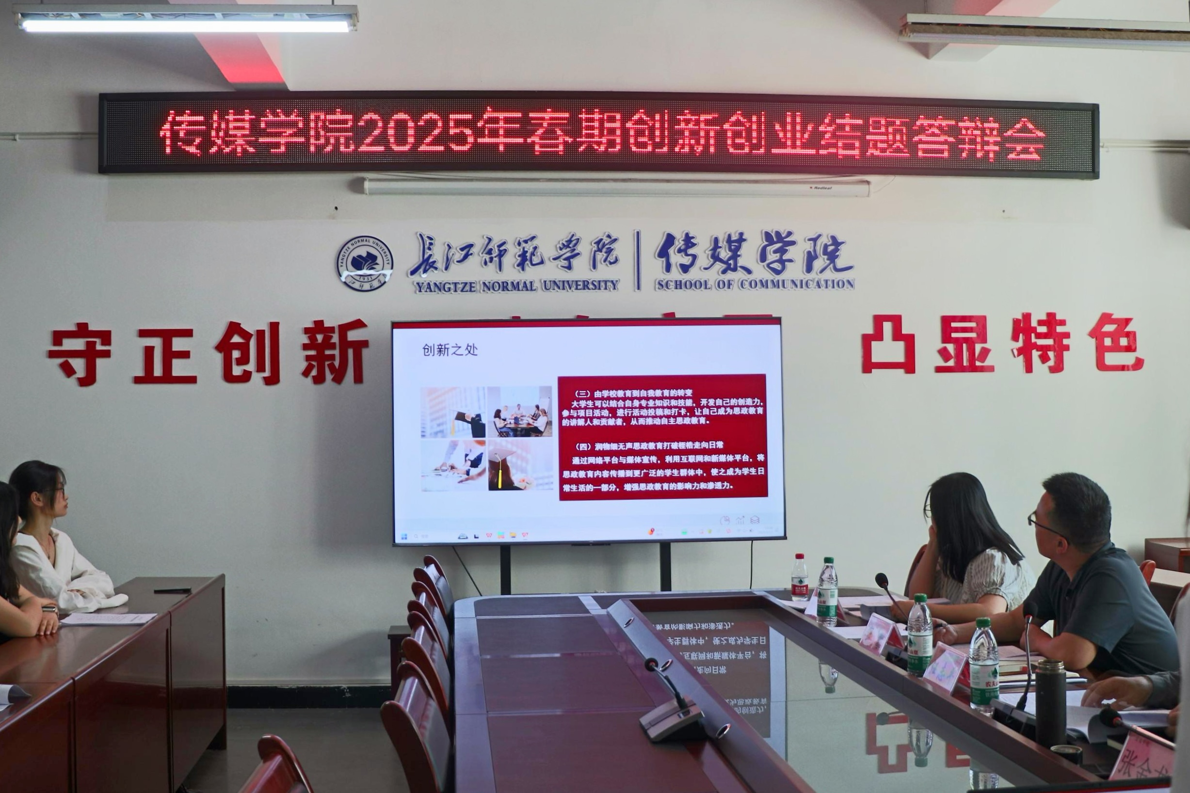 5月12日,传媒学院于格致楼2313开展了2025年春期创新创业结题答辩会。来自传媒学院的三支优秀团队,围绕各自项目内容展开精彩陈述。传媒学院院长冉明仙、副院长汪志平、实践教学中心主任张金龙、办公室主任李攀、专业教师刘晓媛出席本次答辩会。