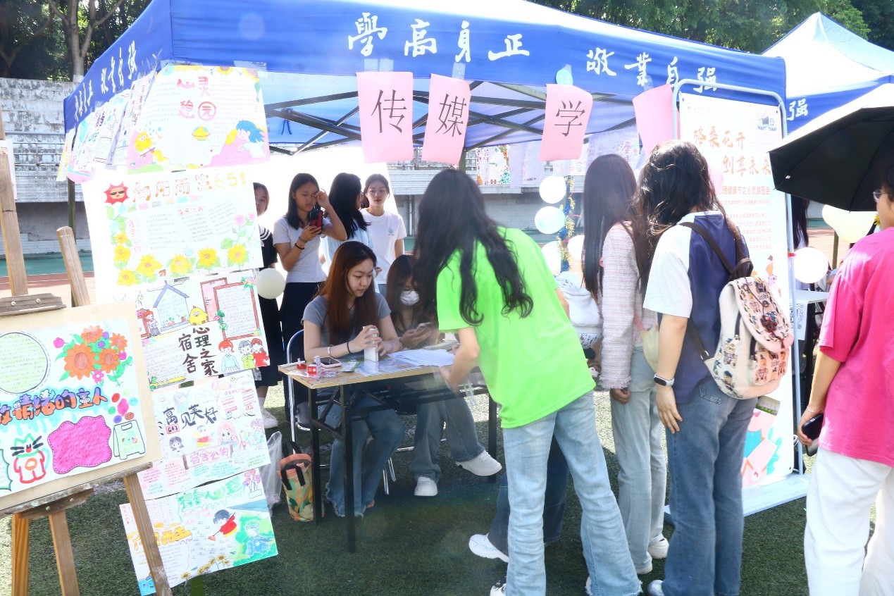 传媒学院在此次游园会中推出“创意大挑战”活动,激发了众多同学的兴趣和参与。活动中,传媒学院工作人员详细地为参加游戏的同学讲解规则,同学们有序排队抽取一张“创意任务卡”,任务内容丰富多样,包括“用身体摆出字母”、“用三句话描述一个不存在的水果”“说出五个以A字母开头的单词”等等。尽管任务较有难度,同学们也是全身心投入活动之中。该活动需打破常规思维,拒绝死板答案,同学们从中提升了自己的创造力与想象力。
