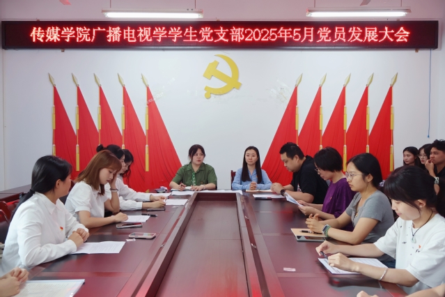 5月29日18时15分,传媒学院广播电视学学生党支部在格致楼2318会议室开展2025年5月党员发展大会。会议由党支部书记王雯同志主持,支部全体党员参加此次大会。