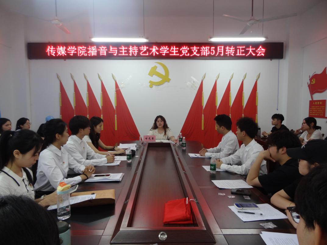 5月30日传媒学院播音与主持艺术学生党支部于格致楼2318会议室开展5月党员转正大会。会议由支部书记甘元琴主持,全体党员参加此次大会。