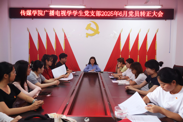 为坚持党的先进性和纯洁性,使党组织能够更好地凝聚青年力量、引领青年发展,6月28日18时15分,传媒学院广播电视学学生党支部在格致楼2318会议室开展2025年6月党员转正大会。会议由党支部副书记姚瑜主持,支部全体党员参加此次大会。
