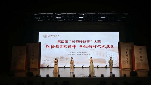 为深入弘扬教育家精神,展现新时代教育者的使命和担当,5月28日晚,长江师范学院第四届“长师好故事”大赛在拏云学生活动中心举办。本次活动由校党委组织部主办,教师教育学院党委承办。担任本次比赛的评委有校党委常委、宣传部部长向从武,校团委副书记许芫颜,校党委学工部副部长郑丽萍,教师教育学院党委书记杨伟以及校党委组织科科长杨浚淇。