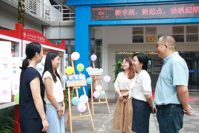 九月金秋,丹桂飘香。9 月 9 日,我院迎来 2025 级新生报到的重要日子。传媒学院彩旗飘扬、指引清晰,志愿者们热情引导,处处洋溢着迎接新同学的热烈氛围。当天上午,传媒学院党委书记谢诗茂、院长冉明仙深入新生报到现场,实地视察报到流程,亲切慰问新生及家长,为新学期开学工作注入温暖力量。
