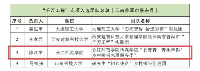 近日,捷报传来!由长江师范学院传媒学院与现代生物与工程学院联合组建的长青青“青禾声影”乡村振兴志愿服务团,凭借扎实的服务成效与创新的助农模式,成功入选全国性“千万工程”志愿团,为学校乡村振兴实践工作再添闪亮一笔。