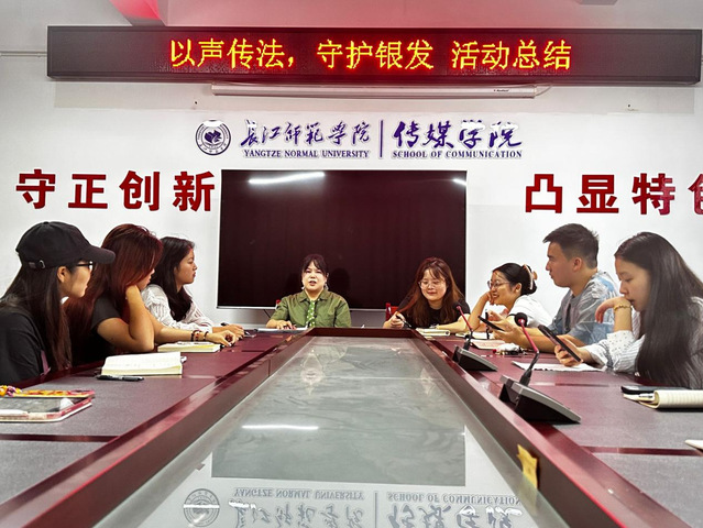 94日,长江师范学院传媒学院“印象·鉴湖”青年服务团在传媒学院2313召开“以声传法,守护银发”普法志愿活动总结会议传媒学院学工办主任兼团委书记王雯2023级辅导员姚瑜、2024级辅导员谭喻、2025级辅导员甘元琴以及全体服务团成员参加本次会议。