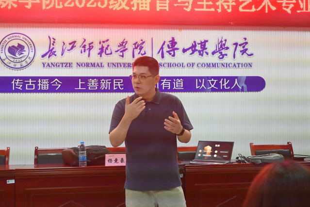 9月11日15时,传媒学院播音与主持艺术专业在2308教室举办2025级新生入学教育专题讲座。系主任杨竞豪担任主讲人。