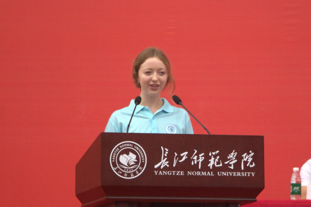 来自波兰的留学生代表范优然用流利的中文分享了她的感受。她深情表达了对中国和长江师范学院的热爱,表示选择长师不仅是为了精进专业知识,更是为了沉浸式体验博大精深的中华文化。她承诺将积极融入校园生活,与来自世界各地的同学互学互鉴、友好共处,努力成为促进中外文化交流的使者,在长师收获丰硕的知识与真挚的友谊。