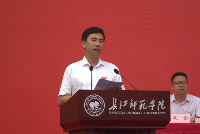校党委副书记、校长杨燕滨教授发表讲话。她首先代表学校党政领导班子和全体师生员工,向2025级新同学表示最热烈的欢迎!向承训部队官兵致以崇高敬意!向莅临大会的校友代表和辛勤耕耘的教职工表示衷心感谢!杨校长在讲话中指出,面对以人工智能为代表的新一轮科技革命浪潮,新时代青年要勇立潮头、积极适应。她介绍了学校近年来在国际交流与合作方面取得的显著成果,强调开放办学理念。杨校长深情寄语全体新生:要以严格自律锤炼意志、收获成长,认真践行军训各项要求,传承弘扬“学高身正、敬业自强”的长师精神,努力成长为兼具家国情怀与国际视野的时代新人,在长江师范学院这片沃土上书写精彩绚烂的青春篇章。