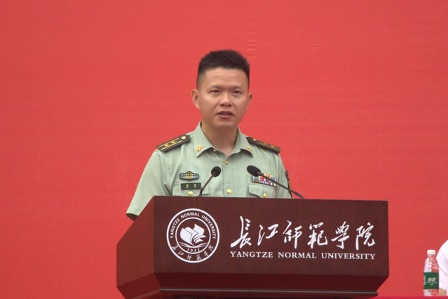 承训部队领导、武警重庆总队执勤第四支队副支队长曾勇中校讲话。他指出,军训是大学生接受国防教育、锤炼意志品质的重要必修课。他希望全体参训同学以军人的标准严格要求自己,并将令行禁止、团结协作、吃苦耐劳的优良作风内化为今后学习和生活的强大动力,确保高标准、高质量完成本次军训任务。