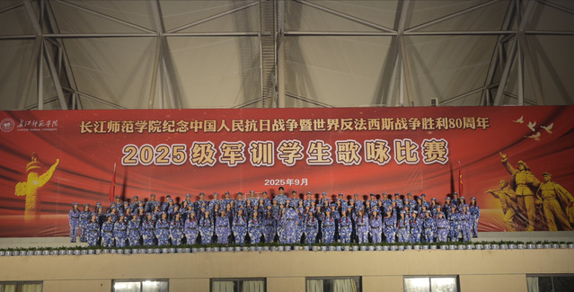 9月24日晚8时,长江师范学院2025级新生军训合唱比赛在行健体育场隆重举行。传媒学院学子身着整齐军训服,以饱满热情与嘹亮歌声登台亮相,凭借作品《长江师范学院校歌》《请你检阅》斩获比赛第一名,展现出传媒学子昂扬向上的精神风貌。