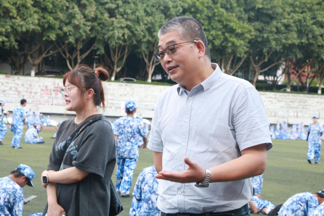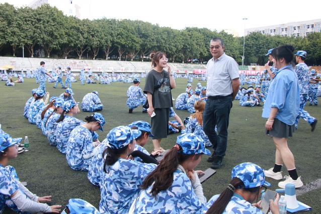 为表达学院对2025级新生的关怀与鼓励,9月24日下午3时20分,传媒学院党委书记谢诗茂、团委书记兼学工办主任王雯及2025级辅导员甘元琴前往行健体育场慰问正在军训的传媒学院2025级全体新生。