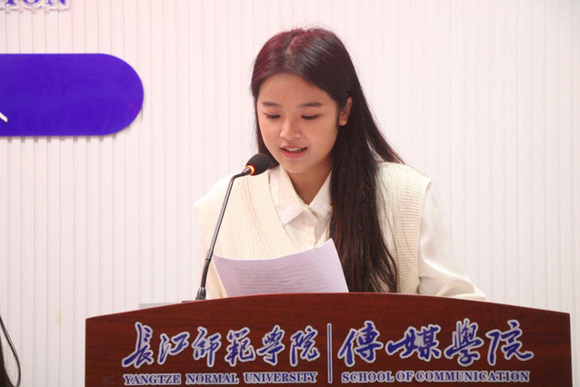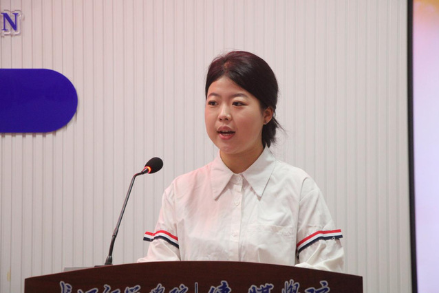 在宣讲团工作介绍环节,现场通过风采展示呈现团队定位与发展规划,宣讲团负责人蒋语嫣分享团队组建初衷、核心任务及首批活动计划,让在场师生深入了解宣讲团特色。紧接着,新成员代表杨颖结合自身专业热情,表达了加入团队后积极参与宣讲、用声音传递正能量的决心,展现出新成员的活力与担当。
